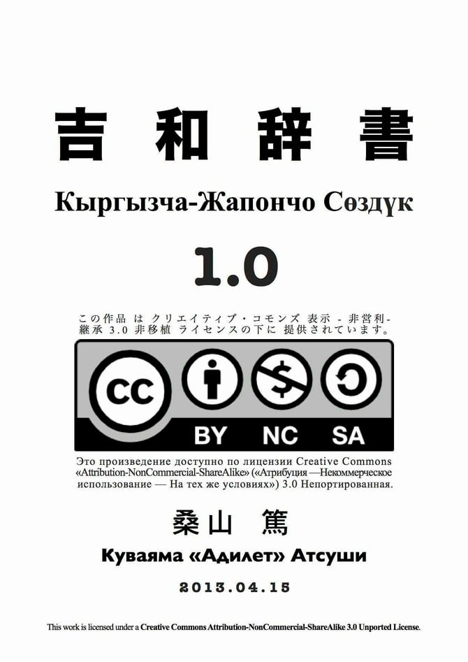このファイルは、『吉和辞書(キルギス語−日本語辞書)』バージョン1.0のPDF版です。